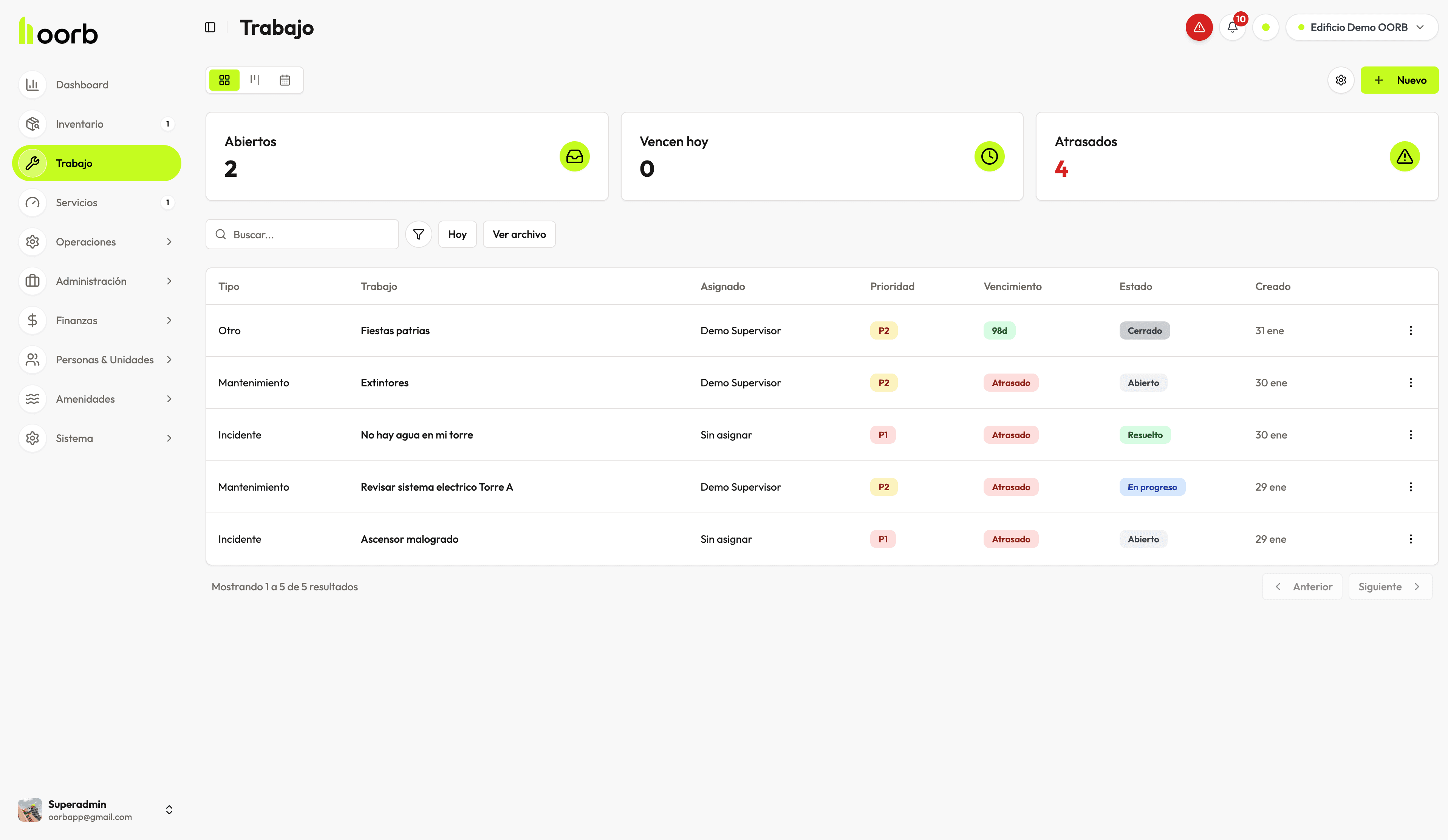 Conserjería, limpieza, residente, tesorero y administrador en un único lugar.