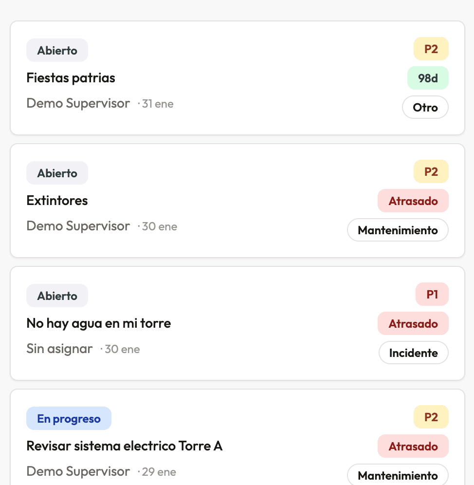 Reporte instantáneo, asignación de personal y seguimiento hasta la resolución.